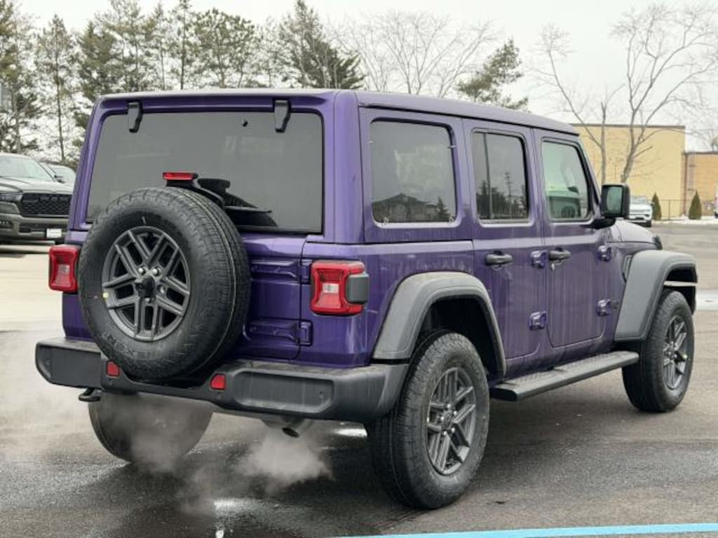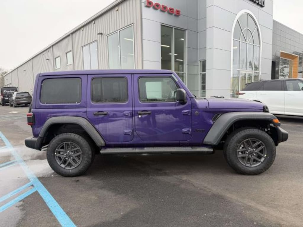 Turn heads with this stunning new 2026 Jeep Wrangler Sport S 4 Door 4x4 in a rare purple finish and only 2 miles on the odometer. Adventure-ready with a powerful 2.0L Turbo I4 engine delivering 270hp and 295 lb-ft of torque, paired with an 8-speed automatic transmission and Command-Trac 4WD system for superior off-road and all-weather capability. Enjoy advanced safety features like Blind Spot & Cross Path Detection, ParkView rear camera, ParkSense Rear Park Assist, and Forward Collision Warning-Plus. Stay comfortable in any season with heated front seats, a heated steering wheel, automatic dual-zone climate control, and the Sky One-Touch Power Top for open-air fun at the push of a button. Technology is at your fingertips with a 12.3" touchscreen, Uconnect 5 with Apple CarPlay/Android Auto, Bluetooth, 4G LTE Wi-Fi hotspot, and SiriusXM. Convenience abounds with remote start, power heated mirrors, keyless entry, and deep-tint sunscreen windows. The Wrangler's rugged build features 17" gray aluminum wheels, all-season tires, black tubular side steps, and underbody skid plates. Ready for adventure, daily driving, and everything in between-don't miss this standout Wrangler!